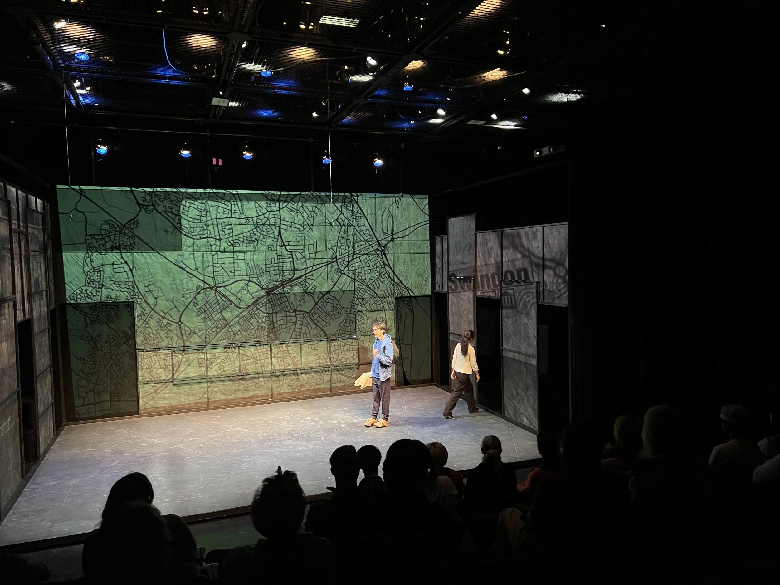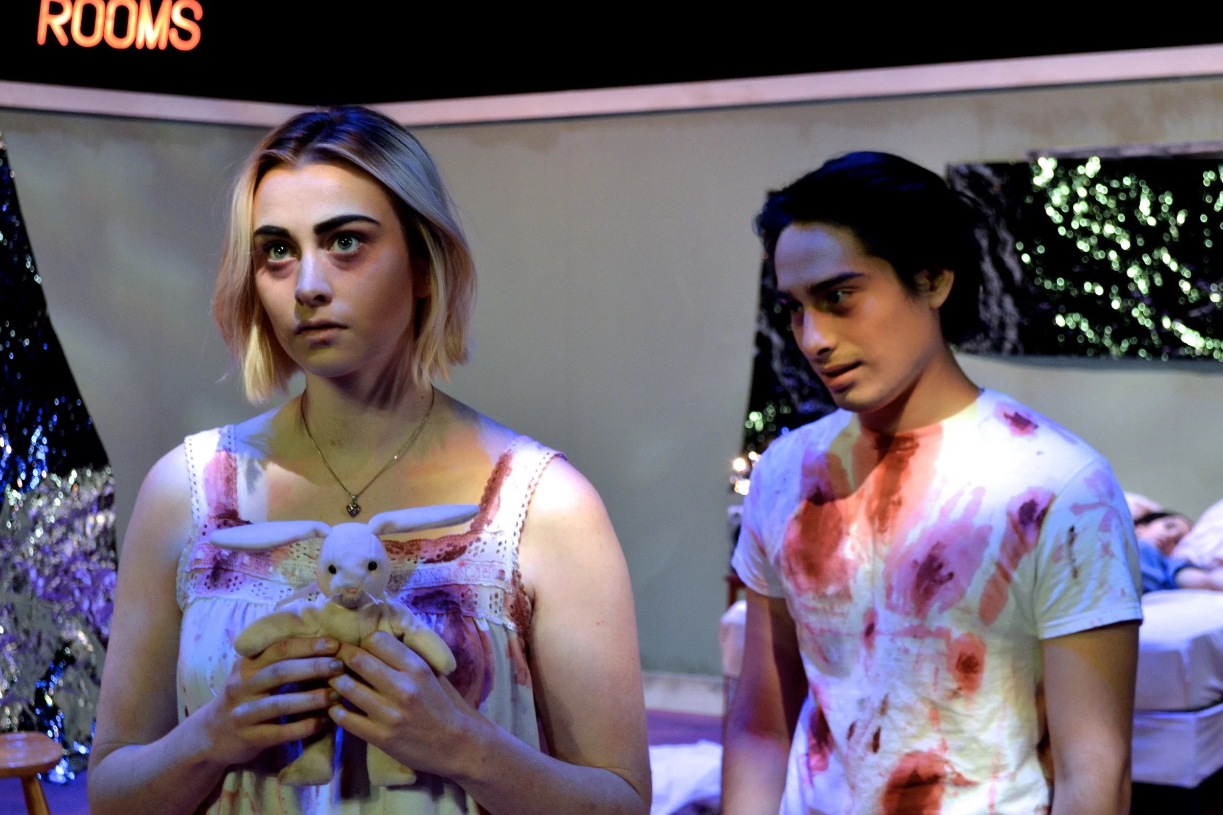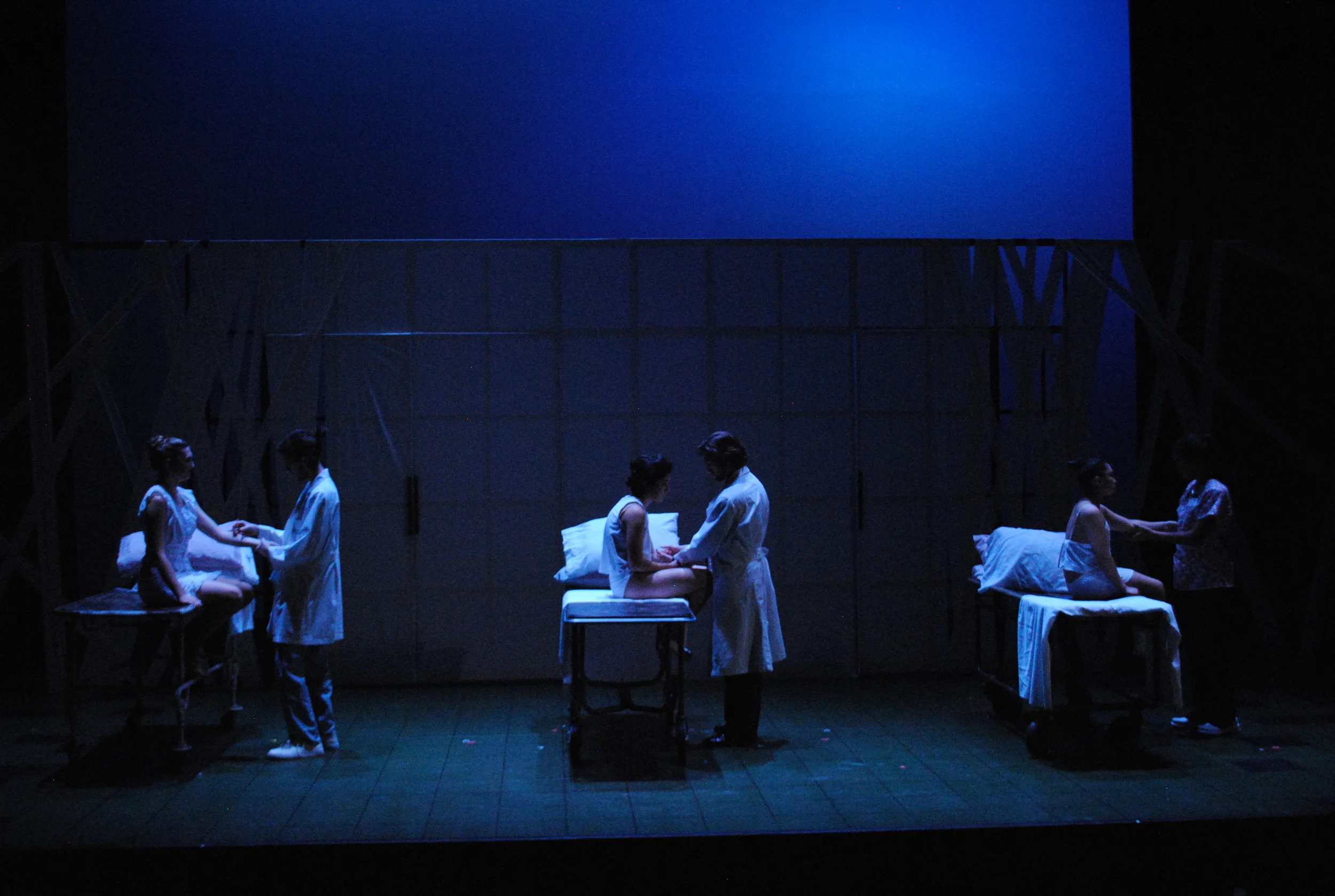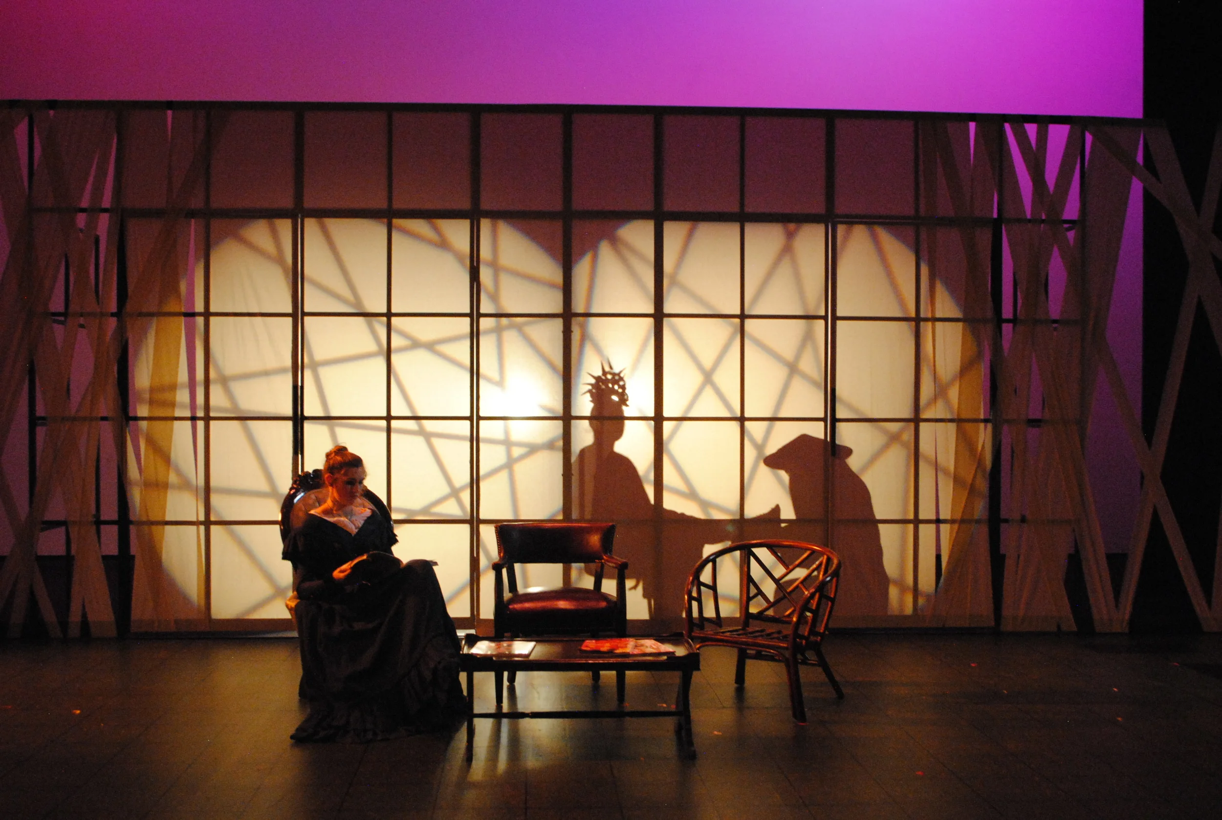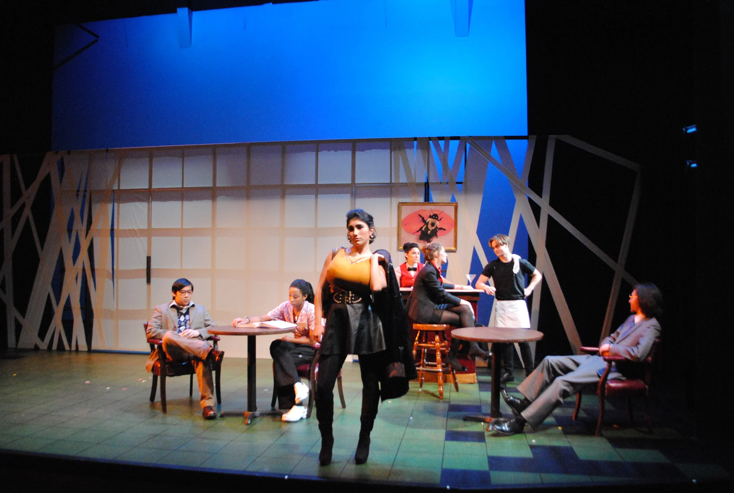 “Lit with a flawless eye by Carina Swanberg, the epic Skip Epperson scenic design serves to move the action from confrontations with touring Romani, into the hallowed cathedral interior and high up into the bell tower where dwells the deaf hunchback Quasimodo (Juan Castro), kept out of sight by his surrogate father, the archdeacon Frollo (David Murphy).”